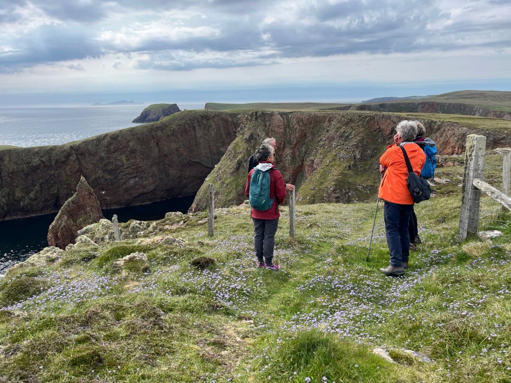 Our merry band set off around the island, taking in beautiful cliffs, a few swimming puffins, a stile or two, and stopping for lunch along the way with views across the sea.