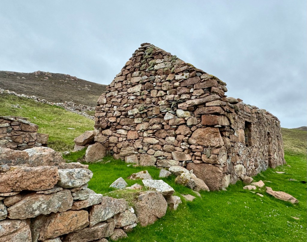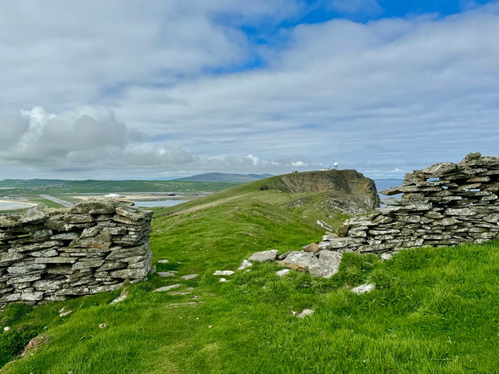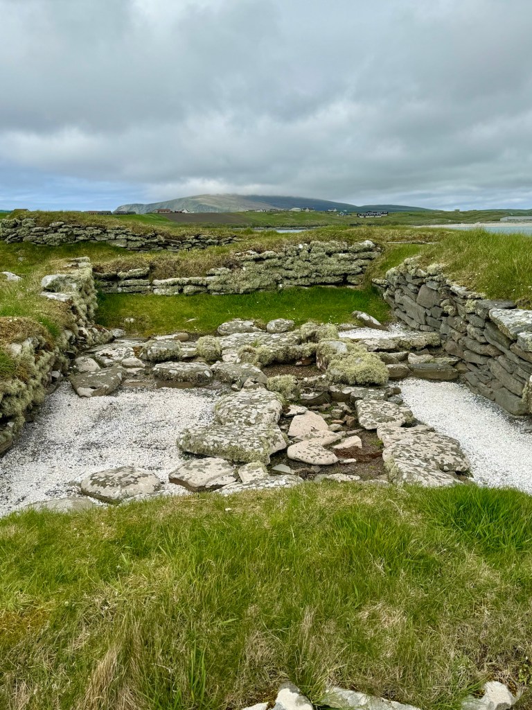 And now a rather violent segue from sweet bus shelters to Vikings, as Unst is one of the richest Viking heritage sites in Europe, with over 60 longhouses uncovered by archeologists so far. At 61 degrees north, the island was the perfect resting spot for Norse travelers on the trading route between Scandinavia, Greenland and Newfoundland. Many settled in this northerly outpost, working the land and making it their home.