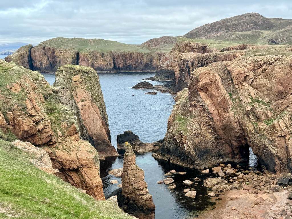 Kirsty told us she had been talking to a guy and he recommended a remote cliff walk, saying it was his favorite on the island. So we went off-book and drove down deserted roads with Kirsty periodically pulling over and consulting her phone to make sure we were on the right track. At one point she blew her cover about our off-the-grid situation by saying, with a wee bit of relief in her voice, “Oh, there we are.”