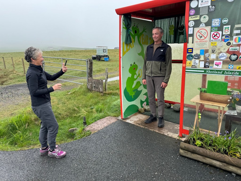 Upon arrival on Unst, the northernmost of the inhabited British Isles, we stopped briefly at Bobby’s Bus Shelter. It’s named after local boy Bobby McCauley. Bobby, who took the bus to school every day, grew weary of the often long, cold and wet waits every morning at the bus stop. He wrote a letter of complaint to the local newspaper requesting that a shelter be built.