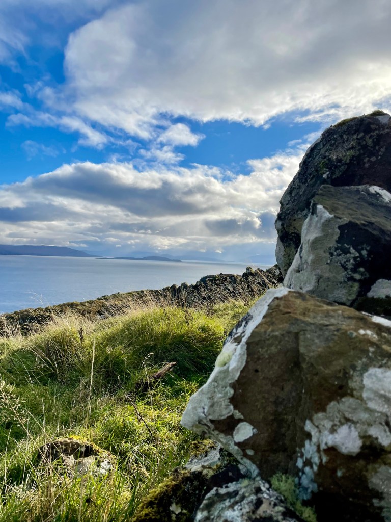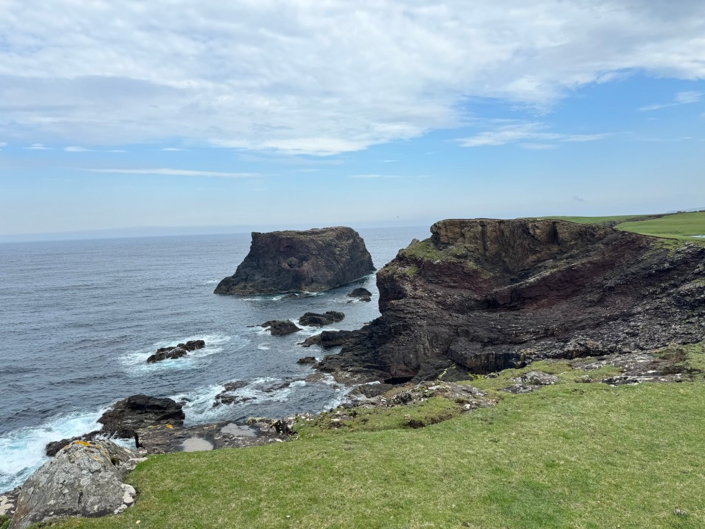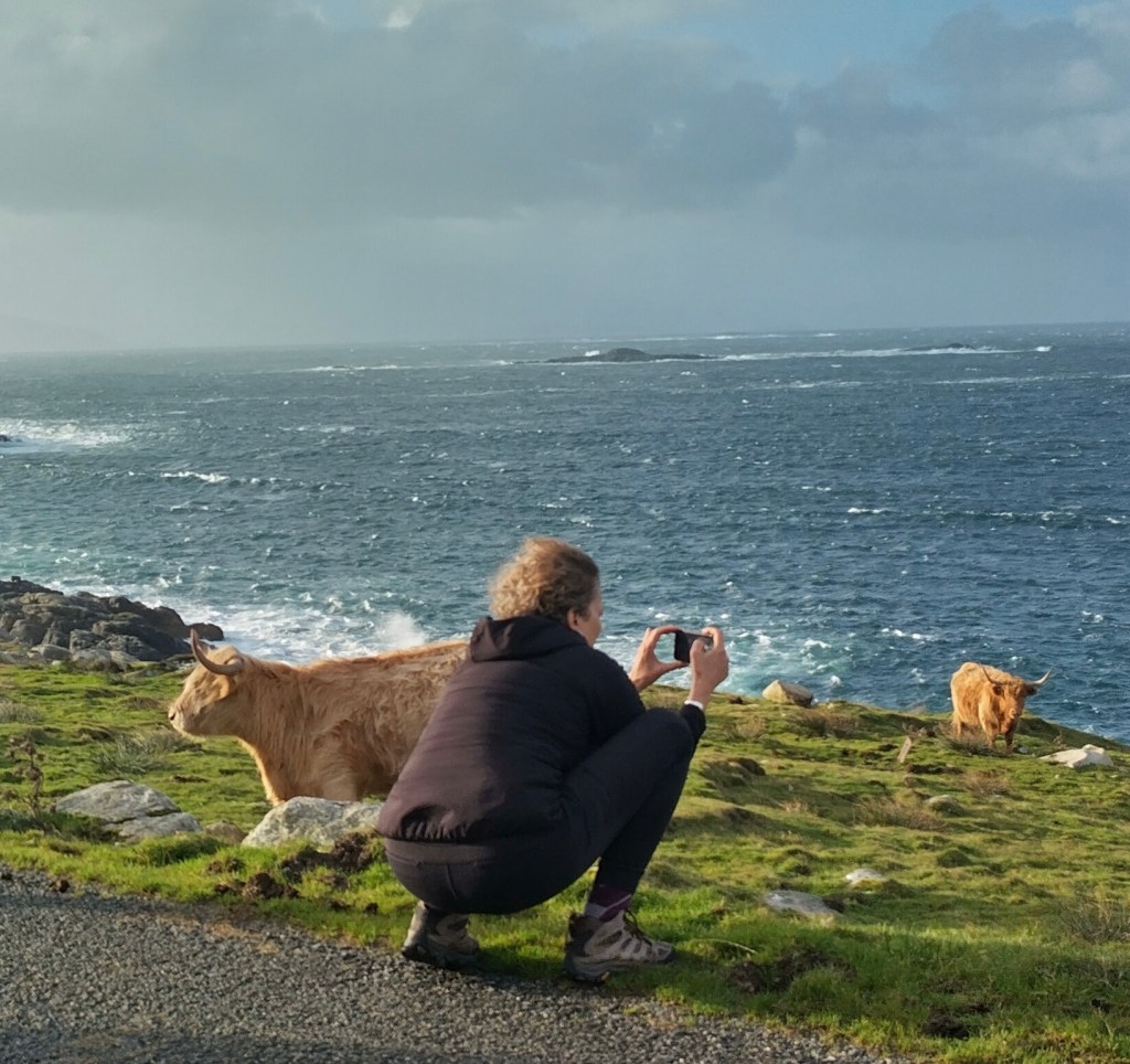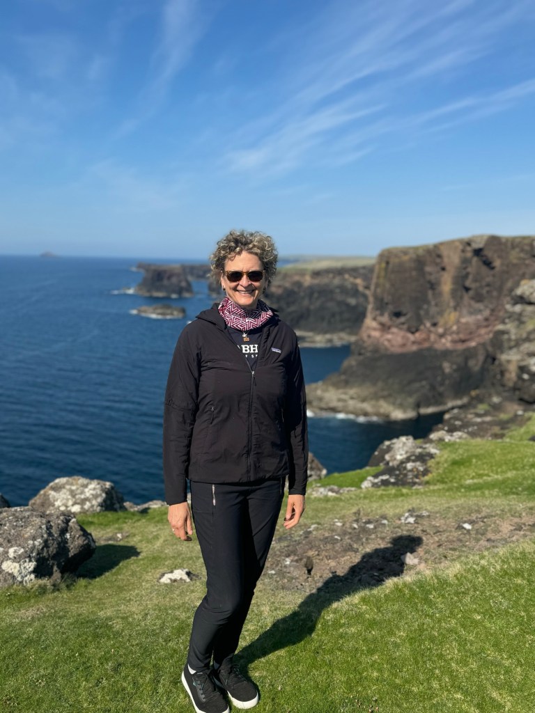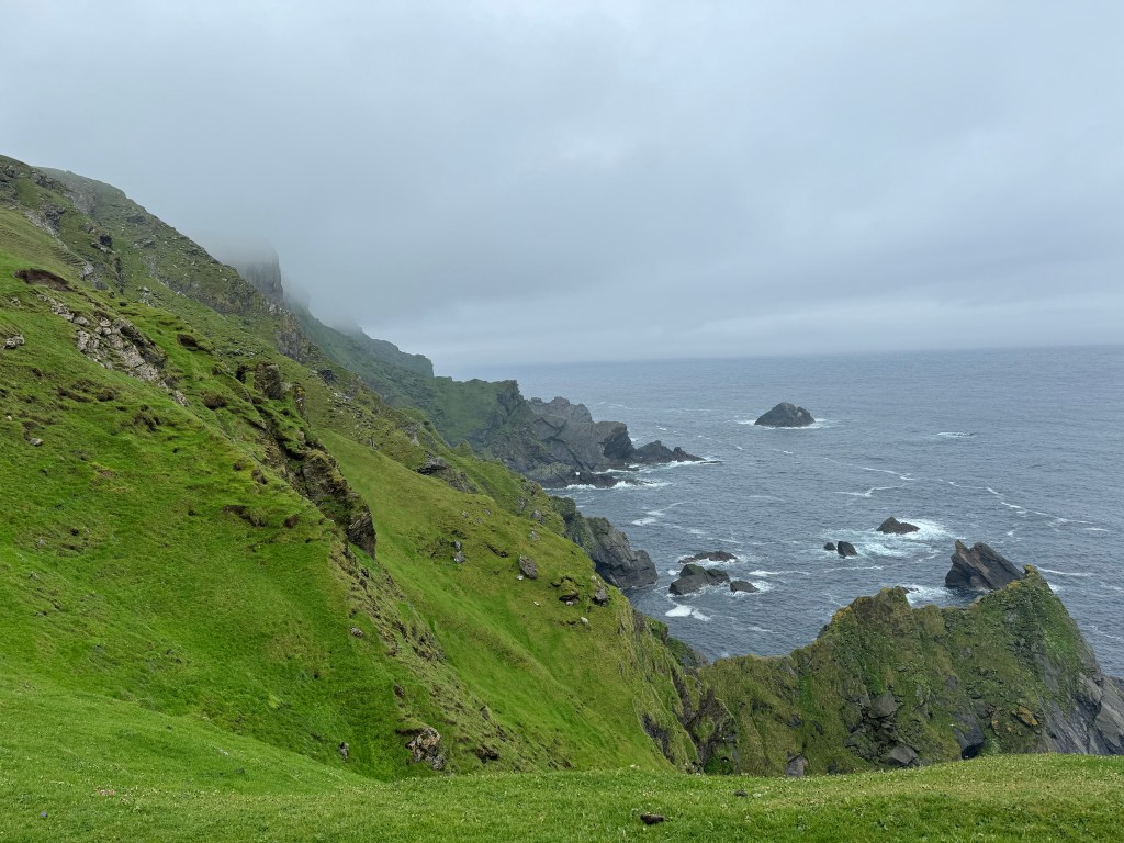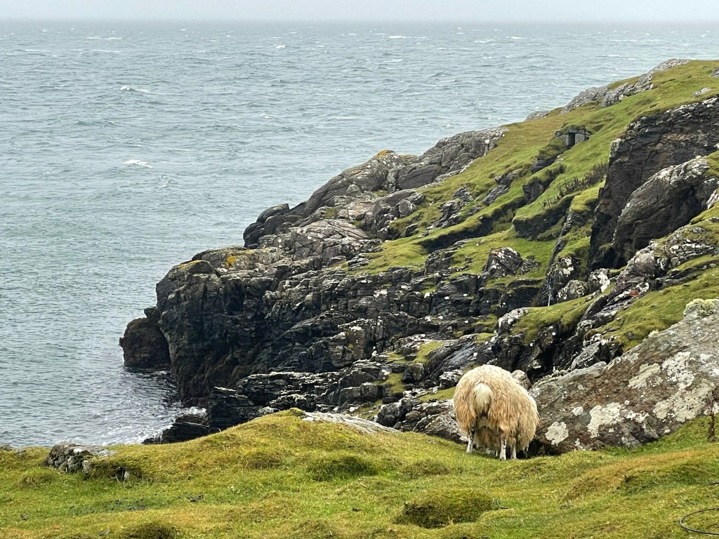 Kirsty told us she had been talking to a guy and he recommended a remote cliff walk, saying it was his favorite on the island. So we went off-book and drove down deserted roads with Kirsty periodically pulling over and consulting her phone to make sure we were on the right track. At one point she blew her cover about our off-the-grid situation by saying, with a wee bit of relief in her voice, “Oh, there we are.”