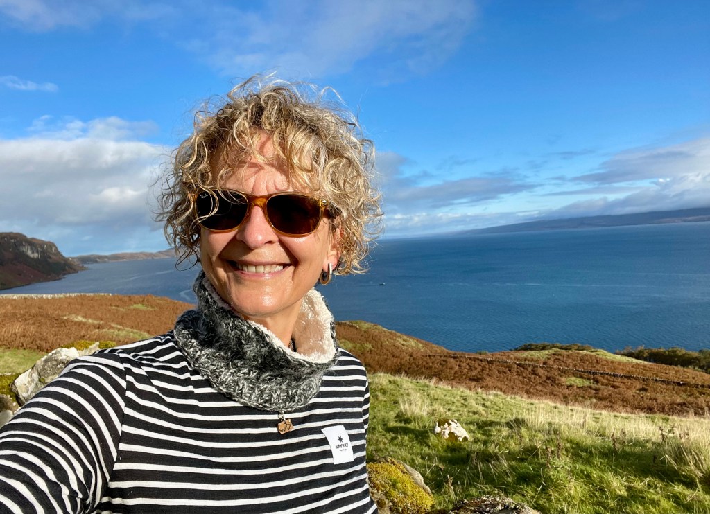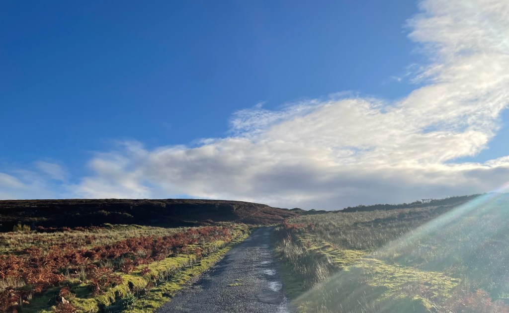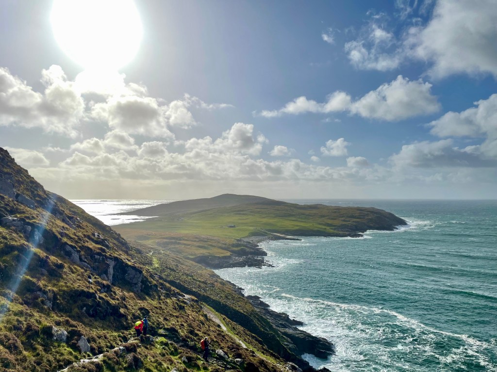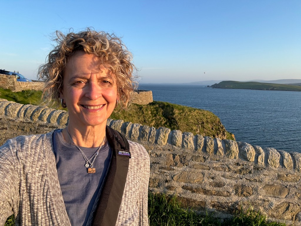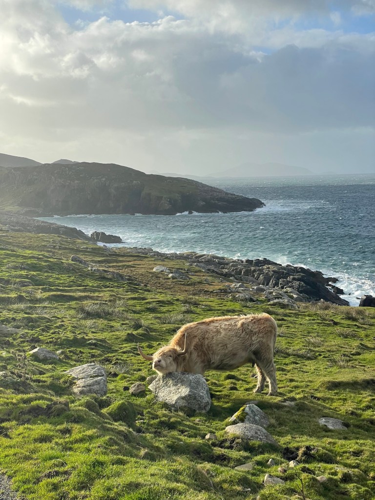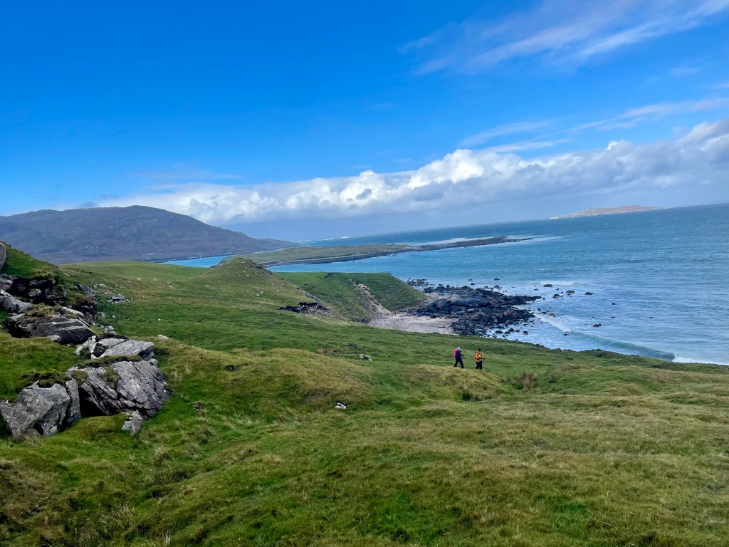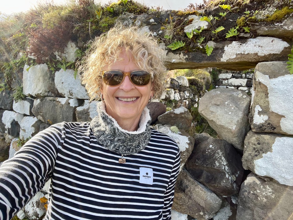 Kirsty told us she had been talking to a guy and he recommended a remote cliff walk, saying it was his favorite on the island. So we went off-book and drove down deserted roads with Kirsty periodically pulling over and consulting her phone to make sure we were on the right track. At one point she blew her cover about our off-the-grid situation by saying, with a wee bit of relief in her voice, “Oh, there we are.”