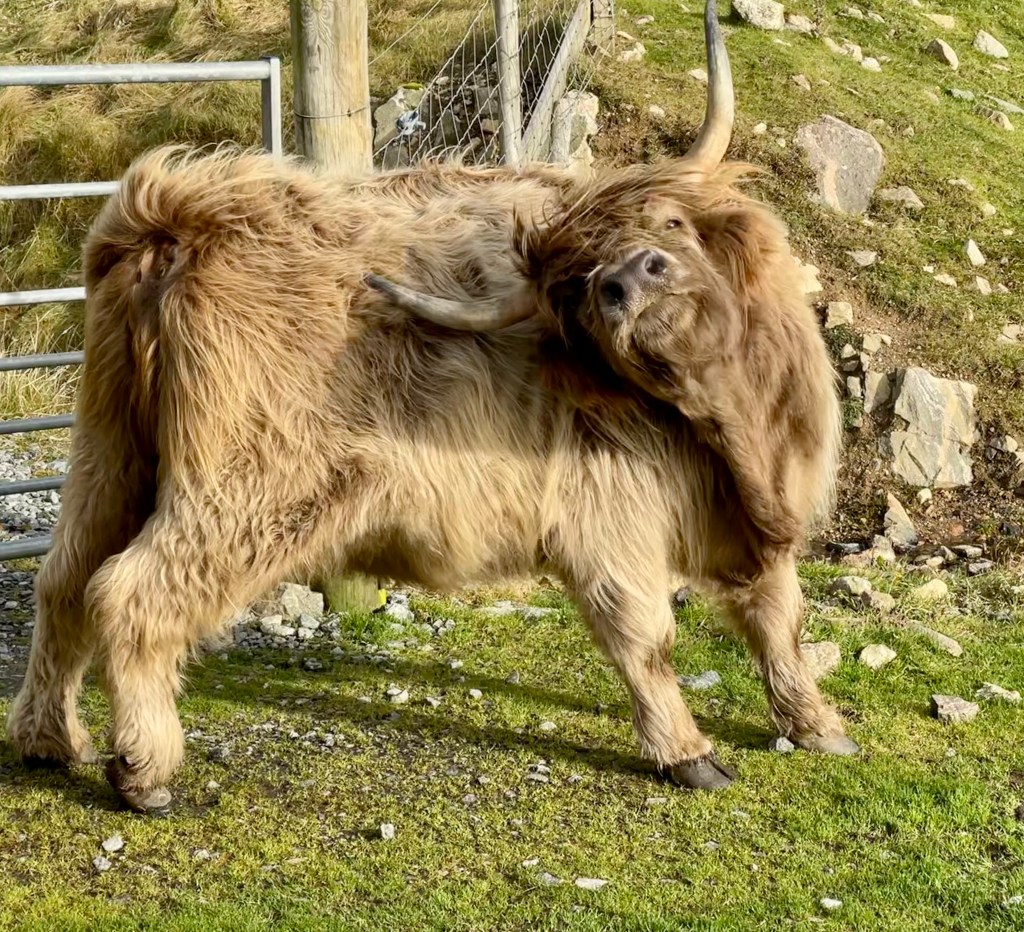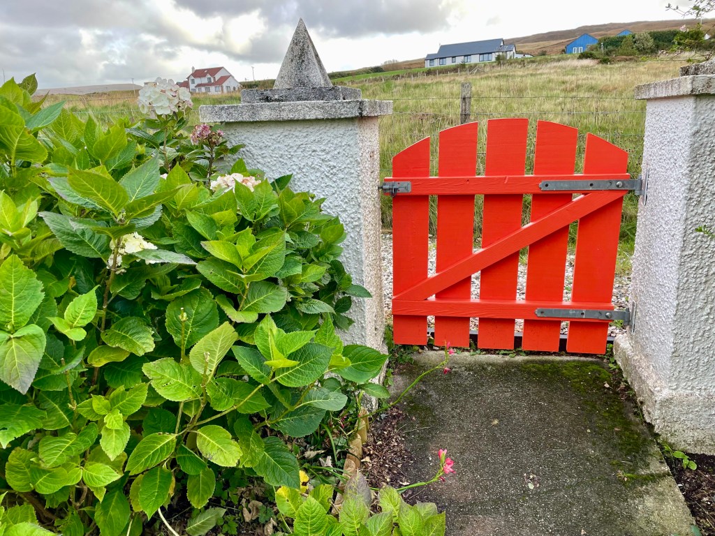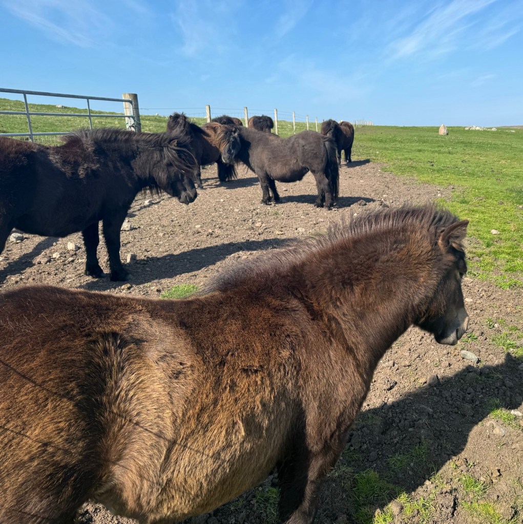 We drove through Silwick, a pretty much deserted settlement, and parked in front of a gate, girding our loins to face the only dangerous animal that inhabits Shetland.