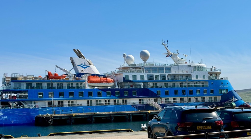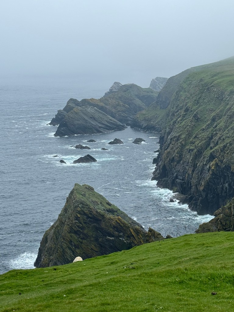And that’s all the history you are getting for this day. I know you are sad! Wipe your tears away, for we are off to sail around the isles of Noss, an uninhabited nature reserve since 1955, and Bressay. The tides have been sketchy of late which we are told may force an early return to port so fingers crossed. The highlight of the tour is a ginormous gannet colony on Noss, where approximately 150,000 of the gorgeous, graceful seabirds nest along a mile-long stretch of cliffs. I feel a slight kinship with gannets because their 6 foot wingspan matches my own.