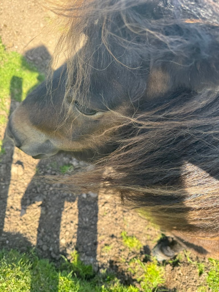 Let’s take a moment, shall we, to appreciate the product-free coiffures of the Shetland pony.