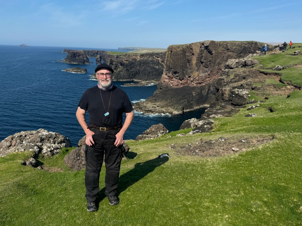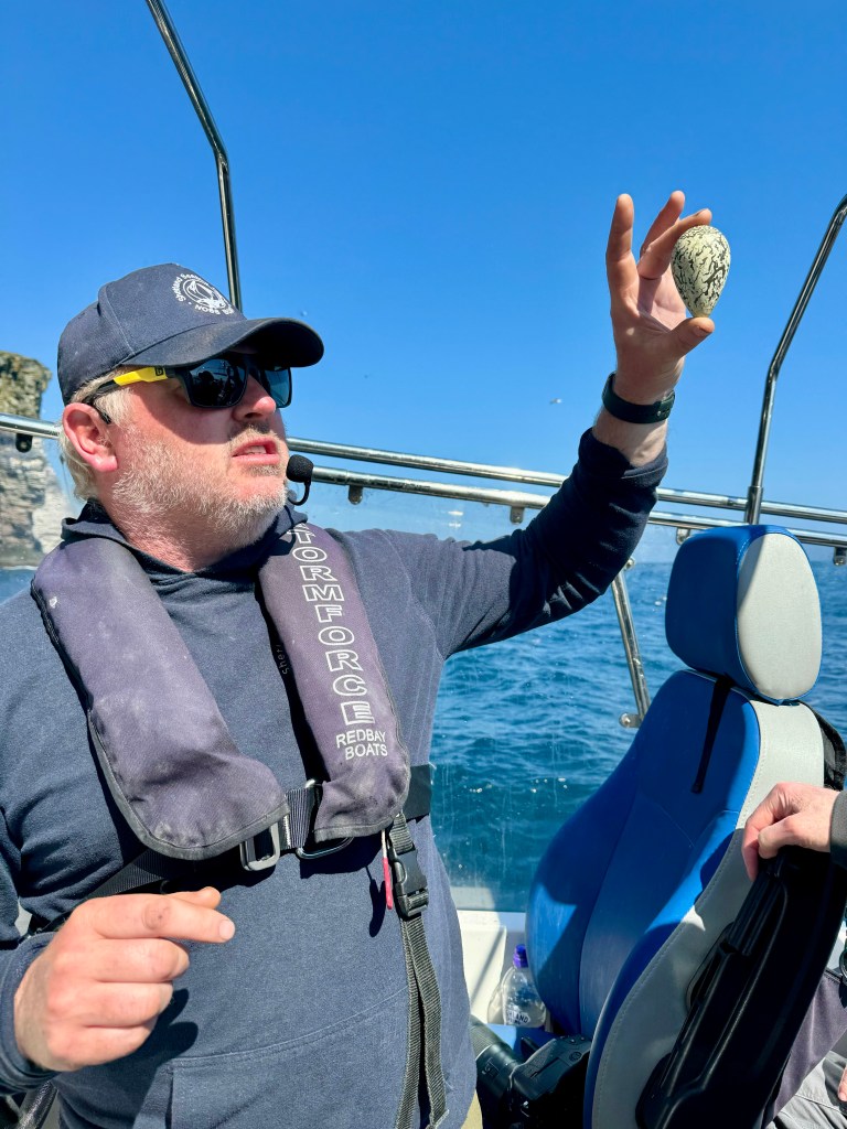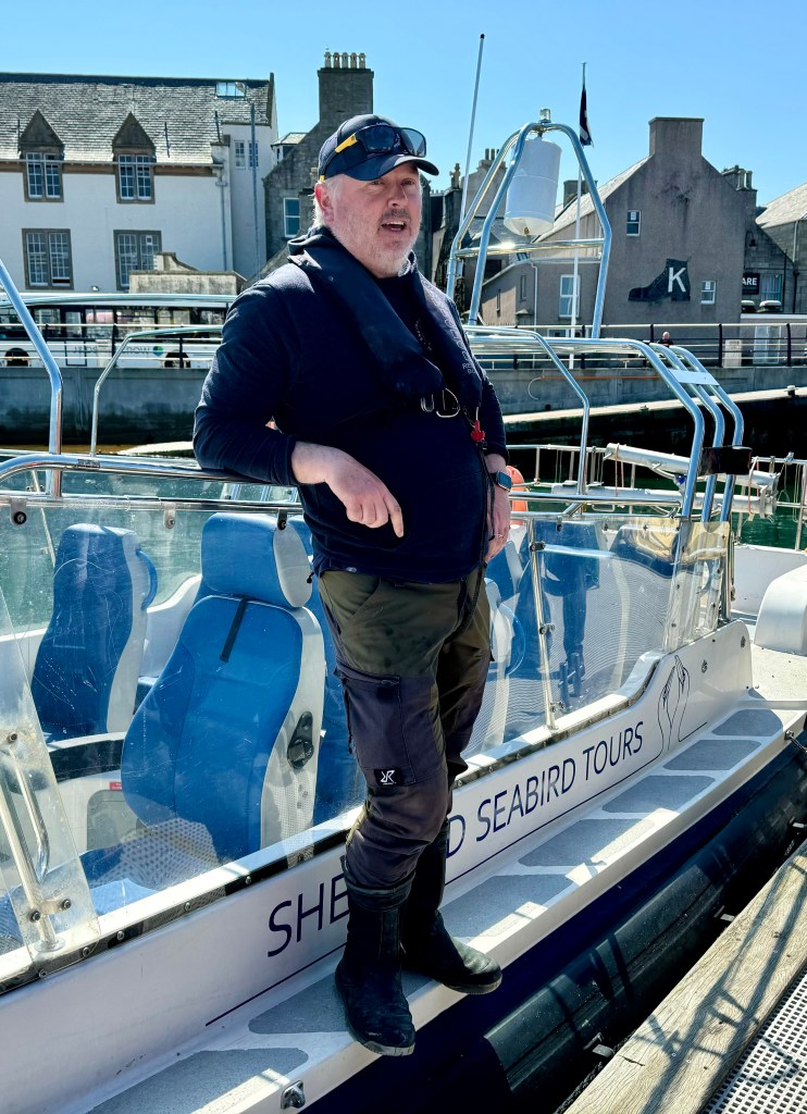 Phil Harris is the owner of Shetland Seabird Tours and is a life-long birder and naturalist. He started his career as a firefighter and then trained to pilot fast rescue boats in the rough seas around Shetland, so we were in expert hands in many categories. Plus he had a great sense of humor, regaling us on the dock with cheerful warnings about how seasick we were all likely about to become.