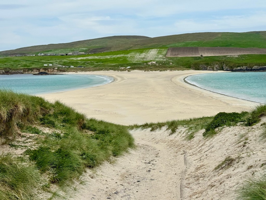 Next morning we were off for a walk around the perimeter of St. Ninian’s Isle, a small island connected to the south Mainland via the largest tombolo in the UK. It’s completely exposed all summer but generally submerged in winter. I can’t explain why, but it was fun to traverse.