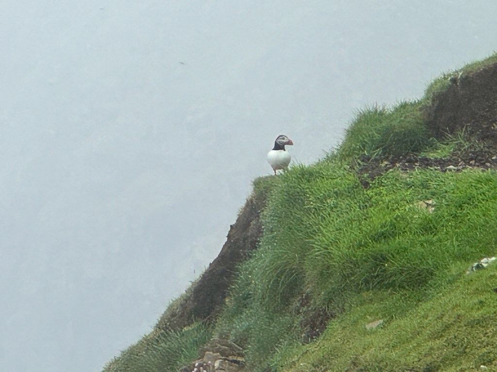 When we ascended to the clifftops, we were rewarded by a single puffin, featured at the beginning of this entry and below. It was thrilling.
