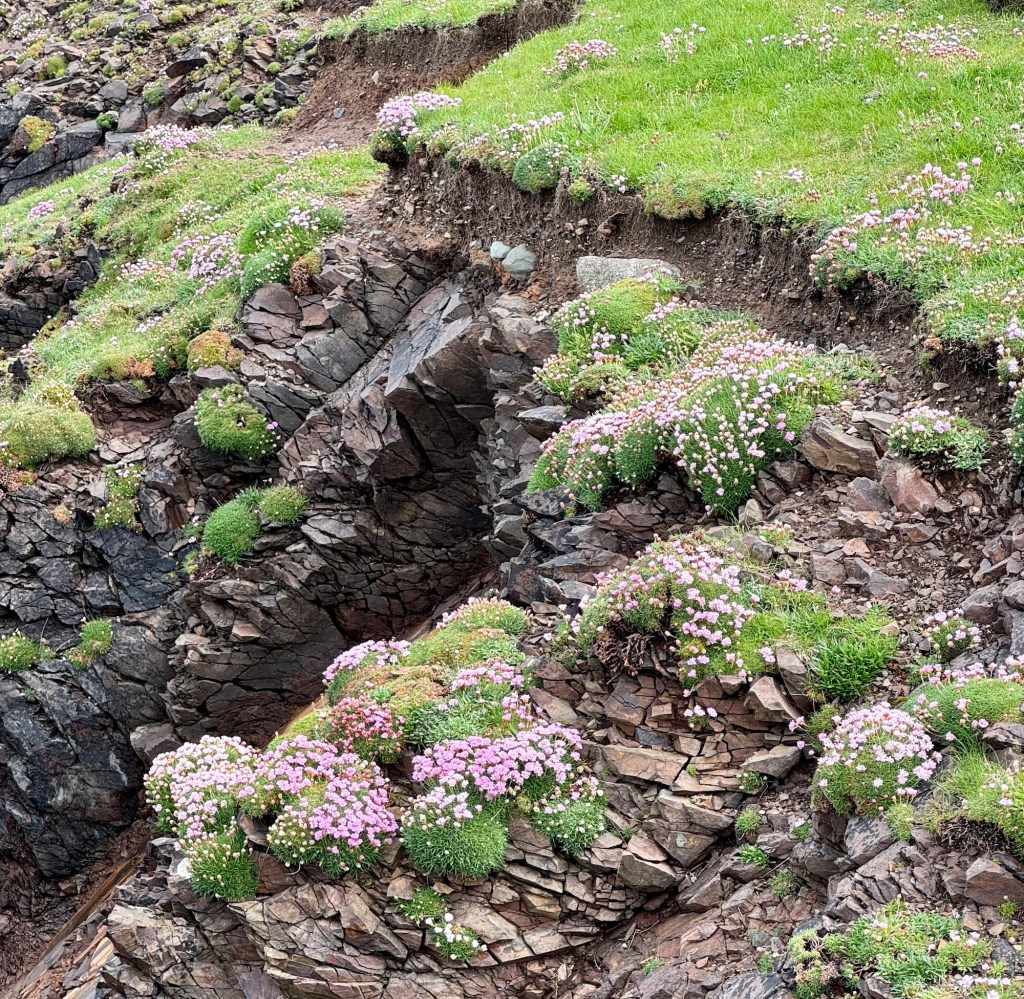 Our walk started at Eshaness Lighthouse, the spot I had visited earlier with Drew. We meandered along the volcanic clifftops, navigating lots of stiles (I love stiles) and reveling in the plentiful wildflowers.