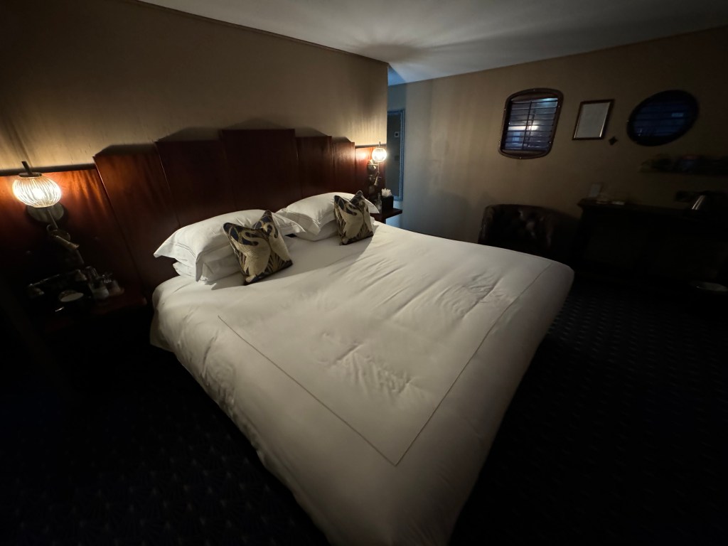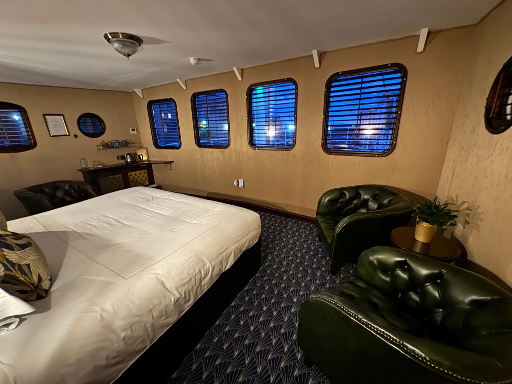 Leith is the home of the Royal Yacht Brittanica, and in honor of her being nearby I booked a room at Ocean Mist Leith, a boat with a singular history. It was built in 1919 as a minesweeper but a year later was sold to Kenelm Guinness (yes that family), a race car driver, inventor and playboy, the kinds of “occupations” men of his circumstances had the freedom to choose back in the day. I mean who wouldn’t choose to be an inventor if having an income didn’t matter? Kenelm converted the boat to a “gentleman’s pleasure yacht,” which – er, whatever.