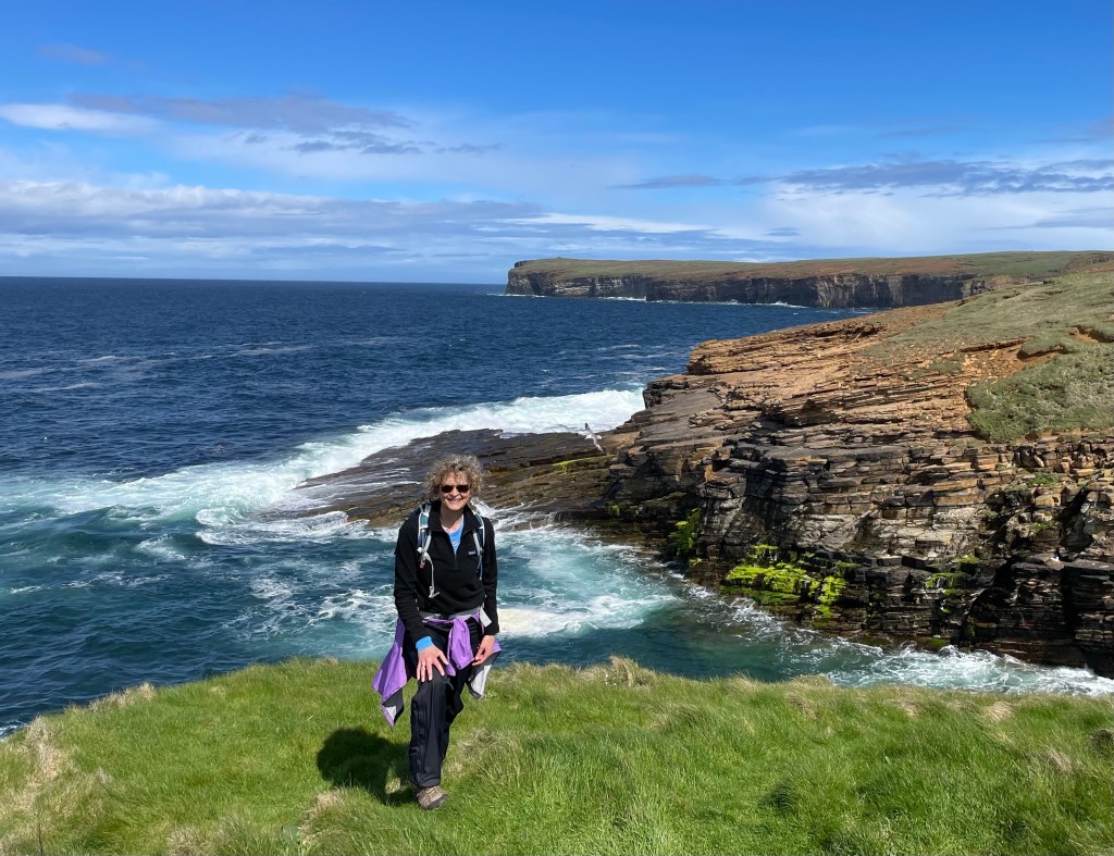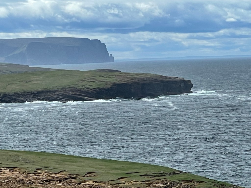 And so after taking in the sands of Hùisinis our merry band of walkers headed up a cliff over the sea. We had a view of Scarp, a now uninhabited island that of course has an interesting and quirky history, this being Scotland and all. In the late 19th century the four square mile island boasted 213 residents. Fun fact, it was one of several Scottish islands where all the men gathered every morning in a so-called ‘parliament,’ to agree upon the work to be done that day. Sometimes these meetings could last several hours and this provides yet another example of why women should be in charge. The last family standing, Mr. and Mrs. Angus MacInnes and their two sons, left in 1971 on a boat. They landed at Hùisinis, their cattle swimming behind them. I like to think that they were highland cows.